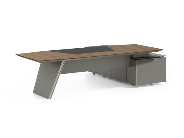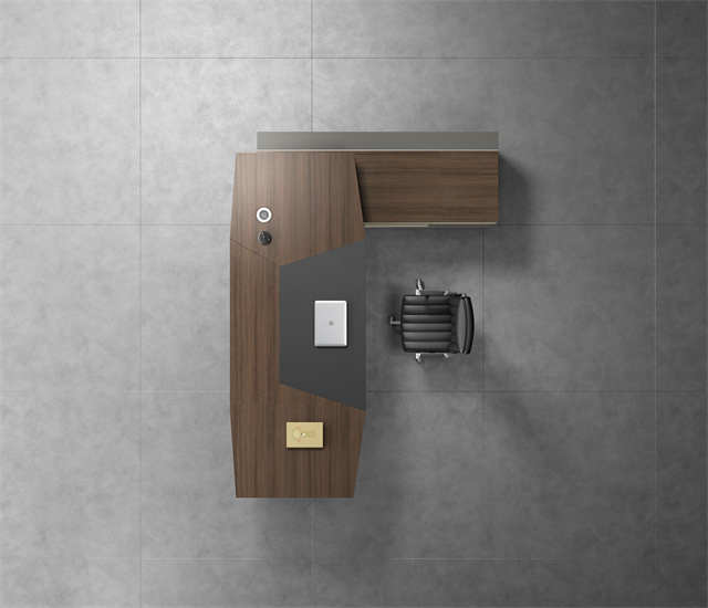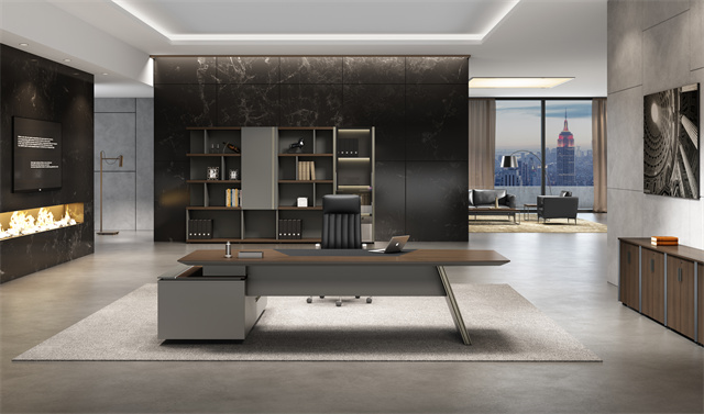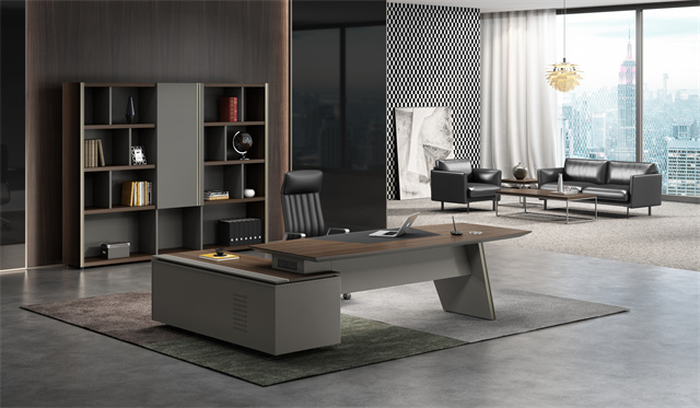 3. 背柜延续了劳伦斯的造型风格,玻璃展柜内具有灯光展示功能,集齐收藏和展示功能为一体,提升展示效果的同时,也可以渲染高档雅致的办公空间环境。
