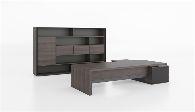 整个高管空间典雅、金属感强。充满着商务气息,独特的展架设计让班台功能更加丰富,“T”型脚架、灰色皮板搭配斜面拼接工艺,简约时尚、细腻贴心,造就一个舒适的办公空间。