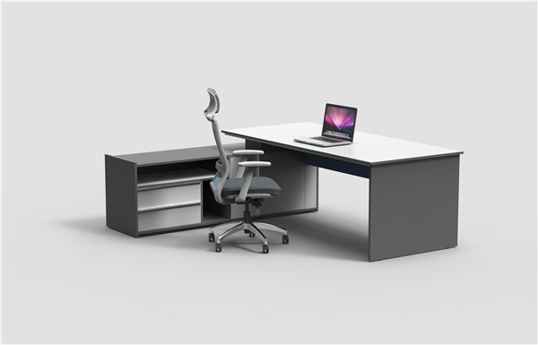 贴面:板材采用“铁灰色”、“森工白色”饰面纸,耐磨,不易变色。主台面为森工白色,采用灰色封边条;其余板件为铁灰色或白色板件有视觉感。