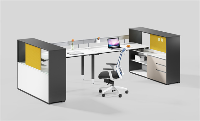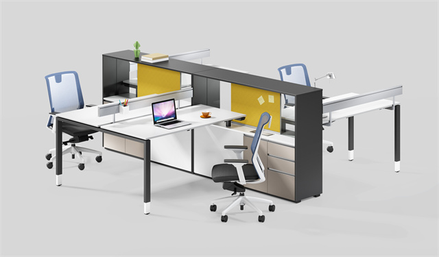 维尼系列职员桌采用半开放式的设计理念,组合形式非常灵活,高柜既可以隔断又可以洽谈,色彩丰富,体现了多样化的办公空间。