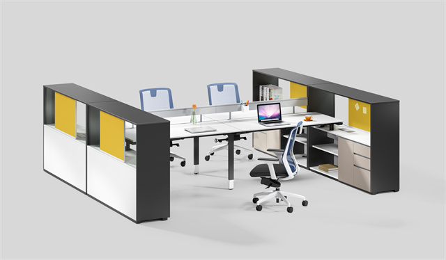 1.维尼系列职员桌采用半开放式的设计理念,组合形式非常灵活,高柜既可以隔断又可以洽谈,色彩丰富,体现了多样化的办公空间。