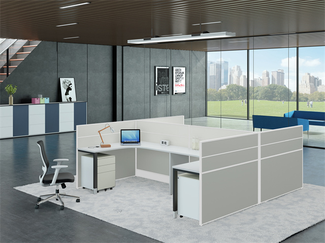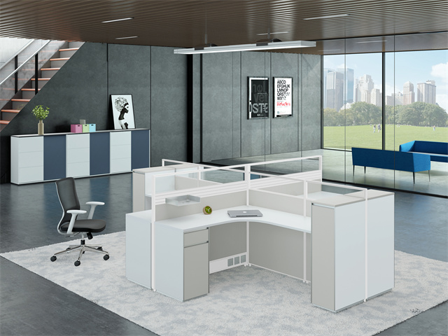 1.屏风系列功能丰富,组合灵活,森工白台面搭配全麻绒屏风,清爽干练。