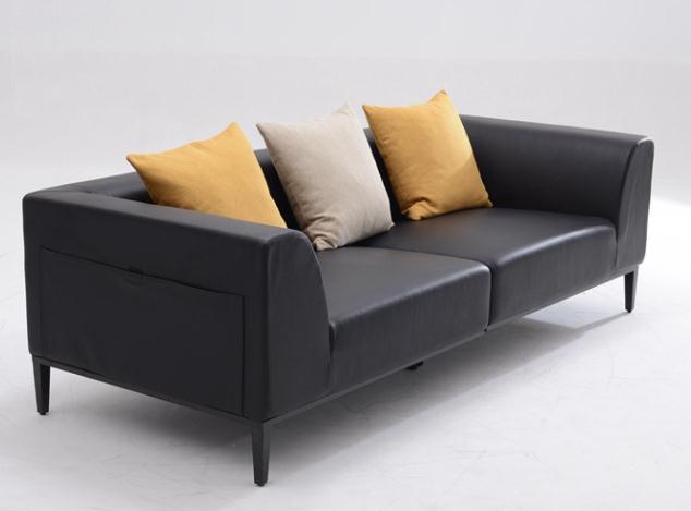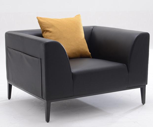 此款沙发采用优质生态皮,坐感舒适,内部填充高弹海棉,饱满有力,弧形扶手造型上更加美观,也增加了舒适度,侧面可以放杂志,方便阅览。