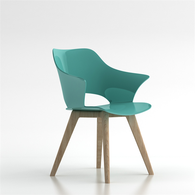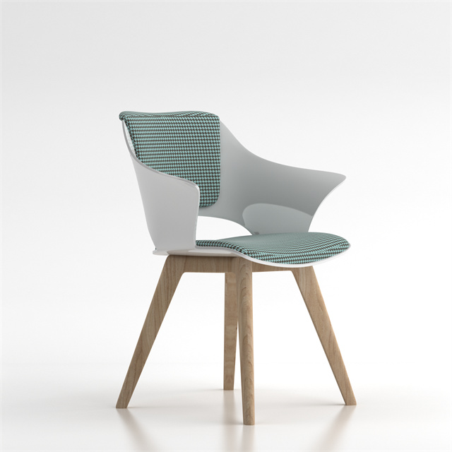会议、洽谈、培训等多用途椅,塑背采用全新环保型塑料,木脚带背座软包。铝合金抛光脚。