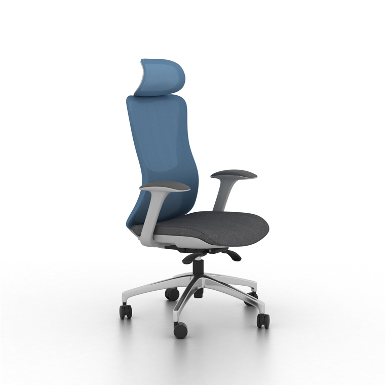 悦途主管椅EYT80EYT81 白色尼龙背框,双层透气网布,自载重托盘,3档调节,坐垫可滑动,R350的铝合金脚,固定扶手,升降腰托,带头枕,带塑料座壳,60R的黑色尼龙轮。