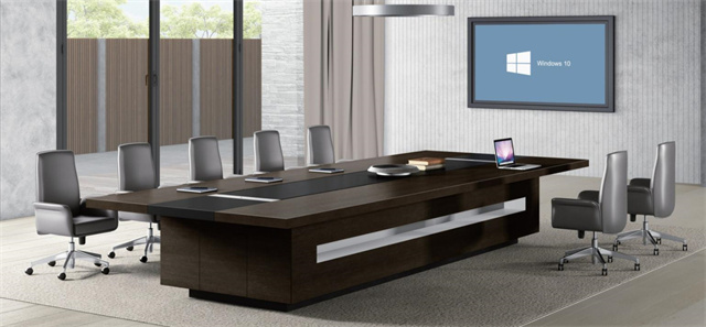 将桥梁雷腾系列会议桌从台面到下架,造型比较方正,大气稳重。