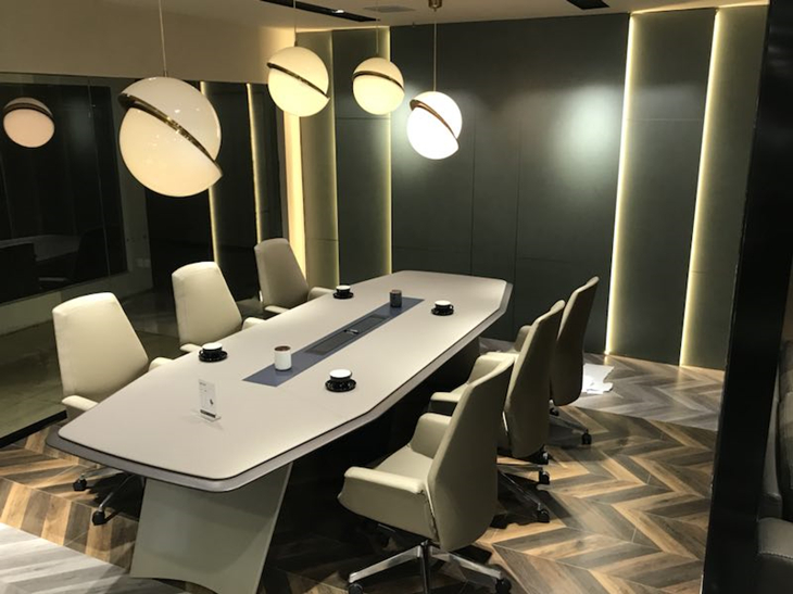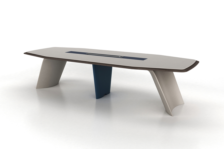 格莱美会议桌MG40 基材:采用E1级中纤板 ,甲醛释放量符合国家标准; 面材:采用天然直纹黑胡桃木皮饰面及卡其色浑水漆搭配,优质卡其色生态皮扪皮; 五金:采用优质五金件,内部含有