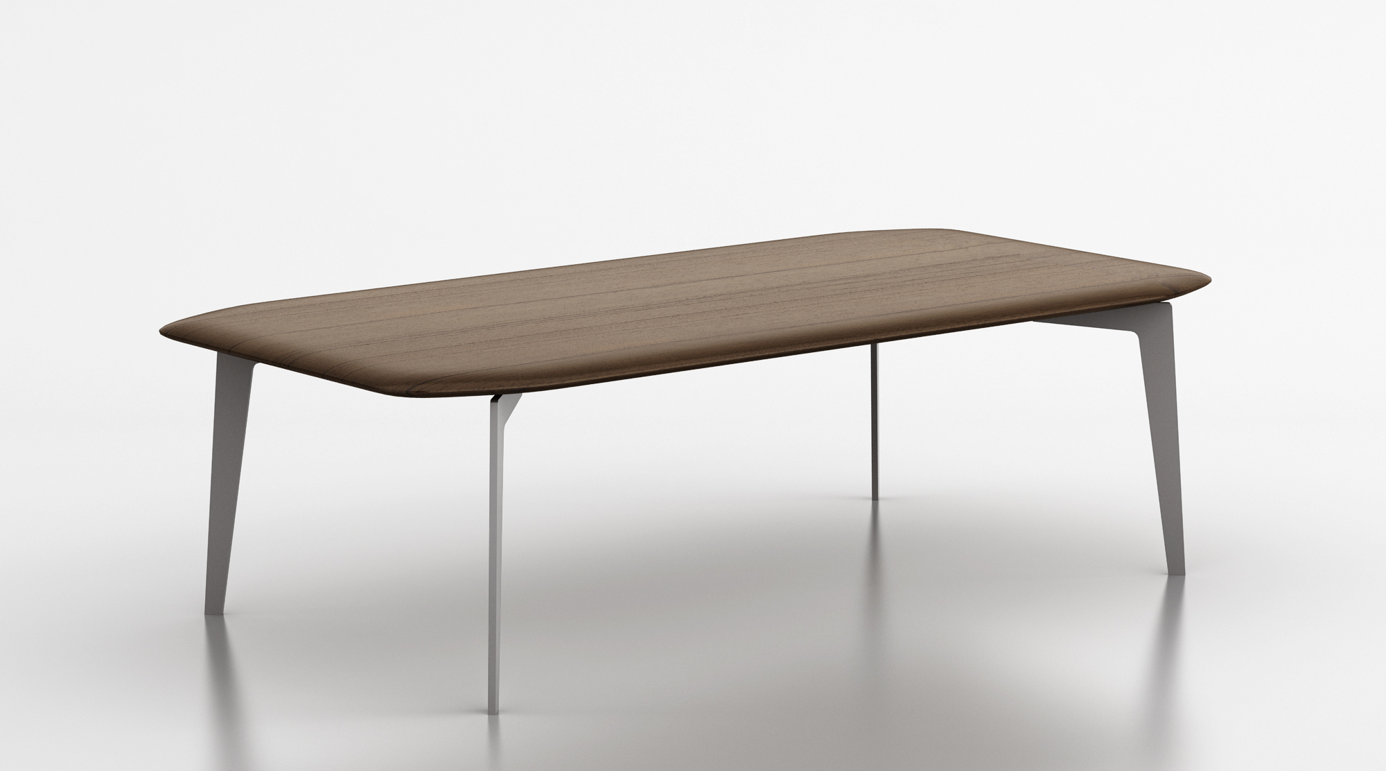 长茶几C019 1360*700*400 1.核桃木饰面。 2.面板采用双面圆弧设计,线条圆润流畅。 3.搭配金属脚架,美观牢固。