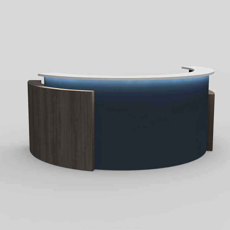 面材:以黑胡桃木饰面为主搭配森工白防火板及深海蓝油漆饰面;