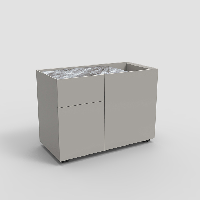 基材:采用欧洲E0及基材标准,甲醛释放量趋于0。 贴面:板材采用夏特饰面纸,耐磨,不易变色。 五金:科尔卡诺五金配件,导轨采用DTC三节滚珠内吸阻尼导轨,设计大方合理,稳重